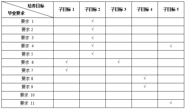 说明:毕业要求对培养目标子目标的支撑用“√”表示。