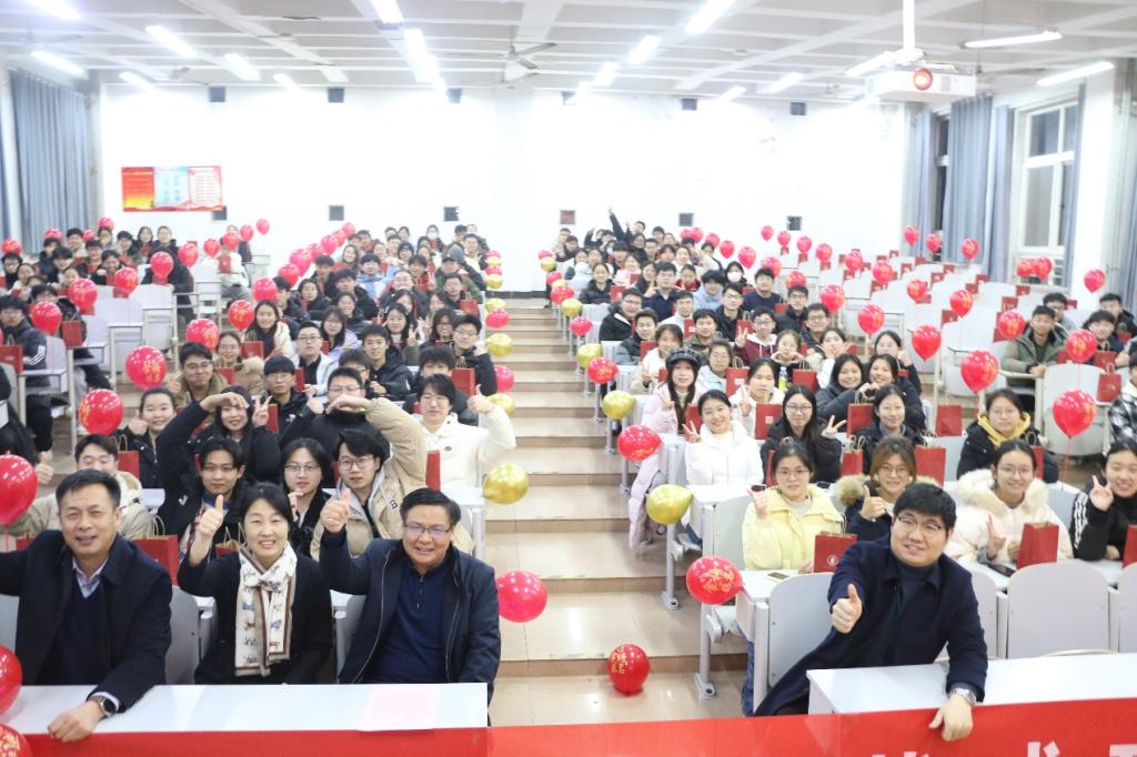 党委书记张明洁、院长李光顺、党委副书记孙旭春、辅导员孙泽玮、杨丹丹为考研学子发放“加油包”并送上诚挚祝福。