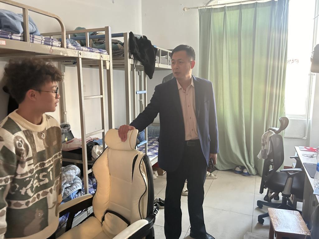 党委副书记孙旭春、辅导员孙泽玮走进学生宿舍,开展“党团领航,宿舍传情”宿舍思政教育活动。