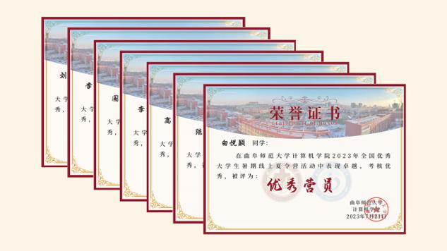 2023年全国优秀大学生暑期线上夏令营优秀营员”,并颁发证书。