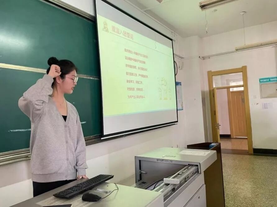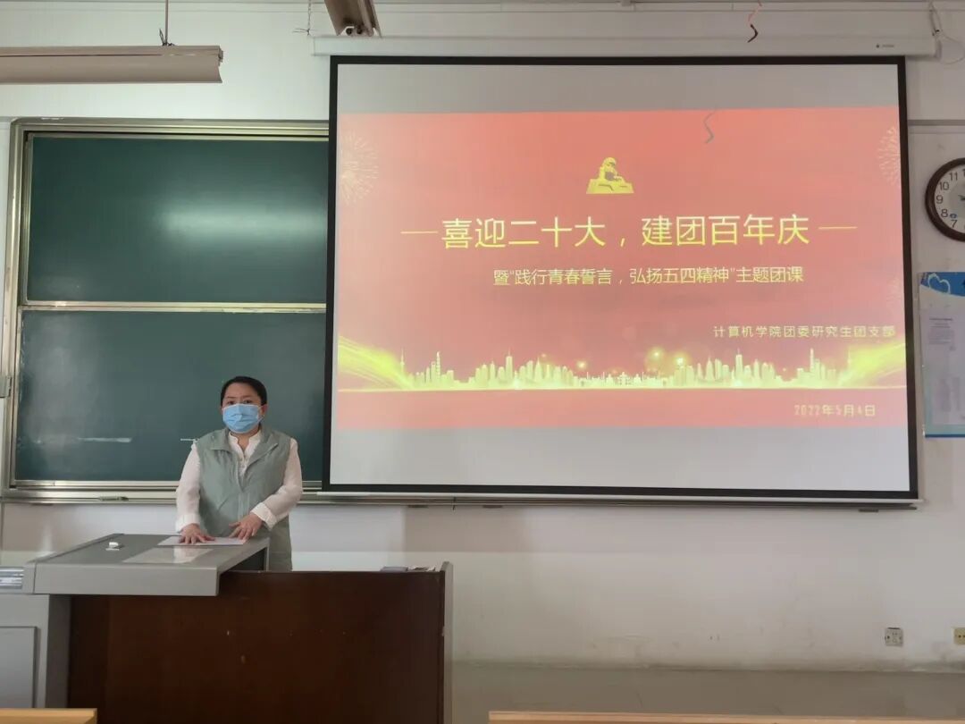 团委研究生团支部于5月4日下午15时在JC401开展“喜迎二十大,建团百年庆”共温入团誓词活动。我院辅导员程荣花老师以及全体研究生团员参加,本次活动由团委副书记王甜甜主持。