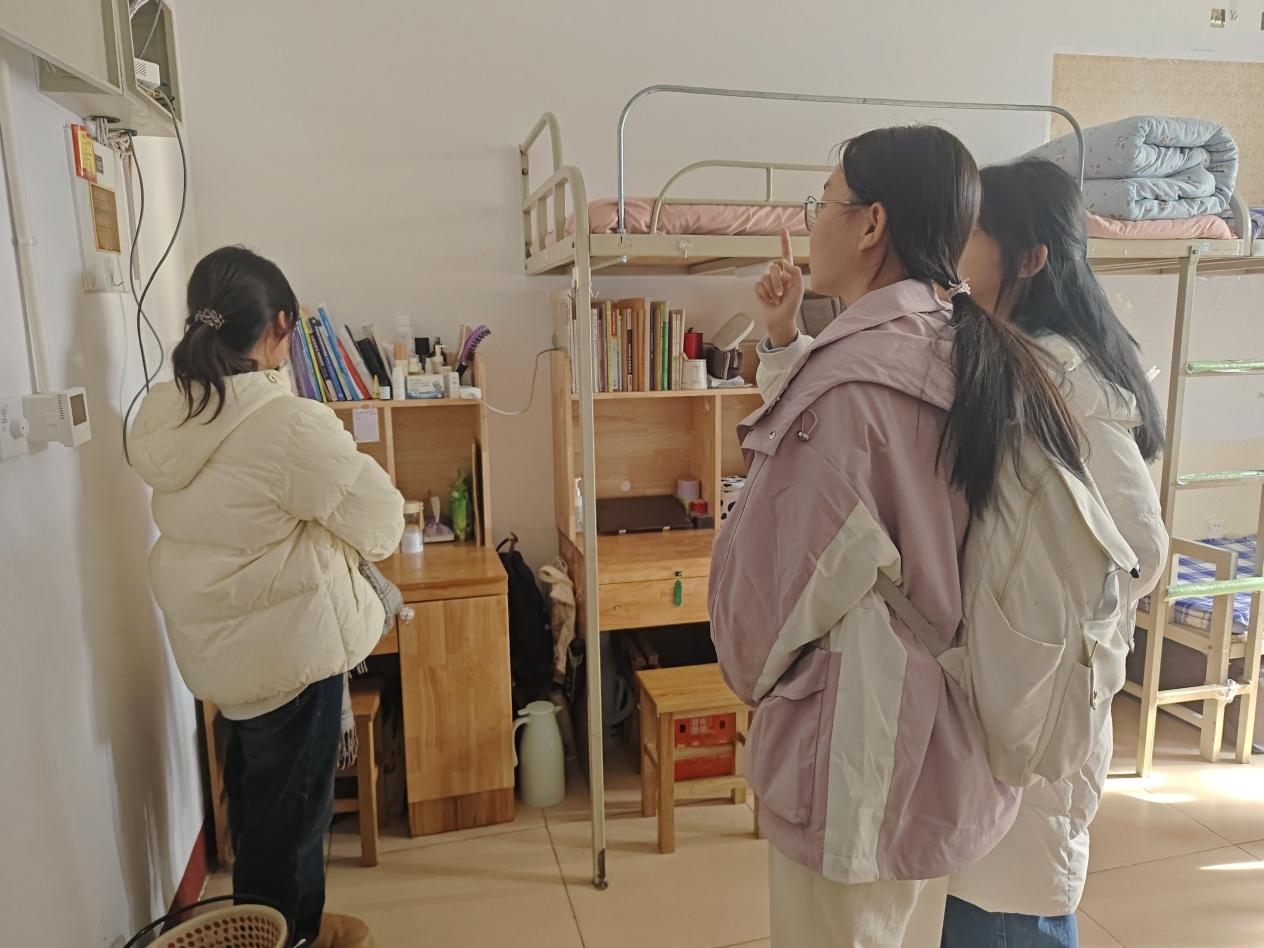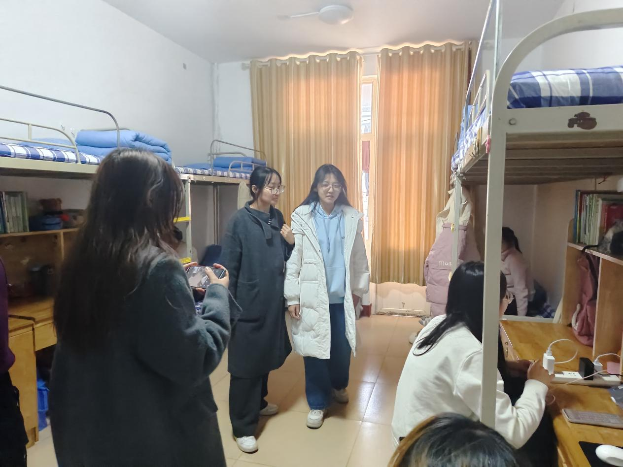 团委副书记李钰萌、学生会副主席徐瑞凯的带领下,24级班团组成检查小组进入学生宿舍对卫生安全问题进行检查宣讲。