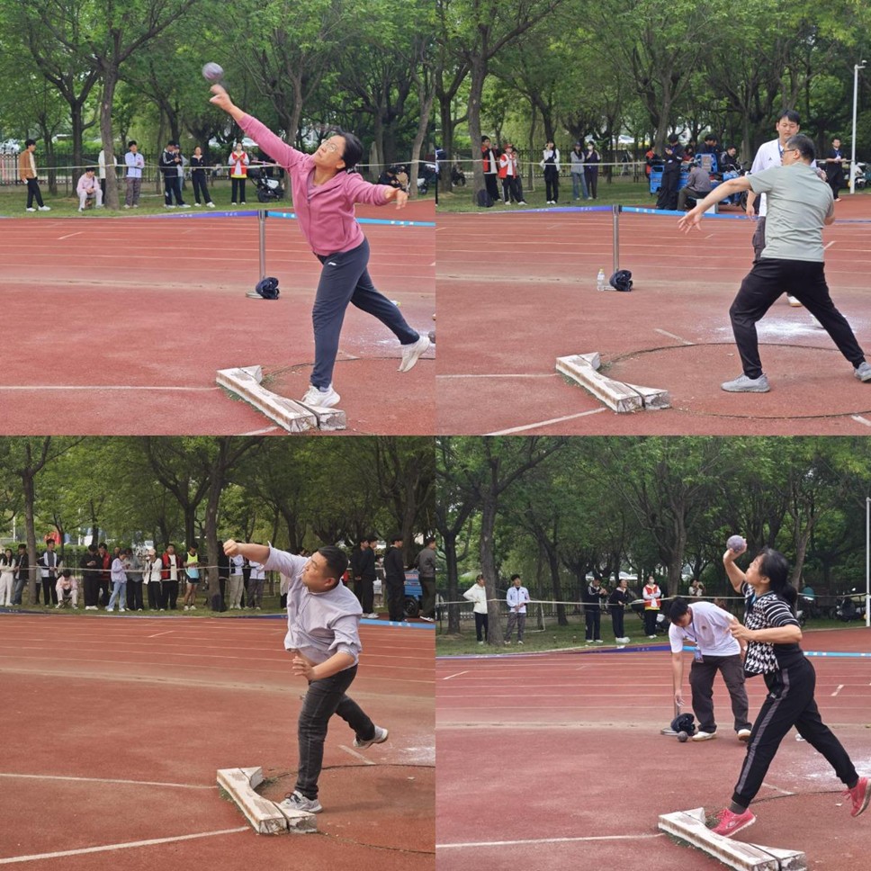 在教工组比赛中,老师们也拼尽全力,享受着比赛带来的乐趣。教工组女子铅球决赛中,王伊蕾、赵玲分别荣获第五名和第六名;教工组男子铅球决赛中,刘效武老师荣获第八名。