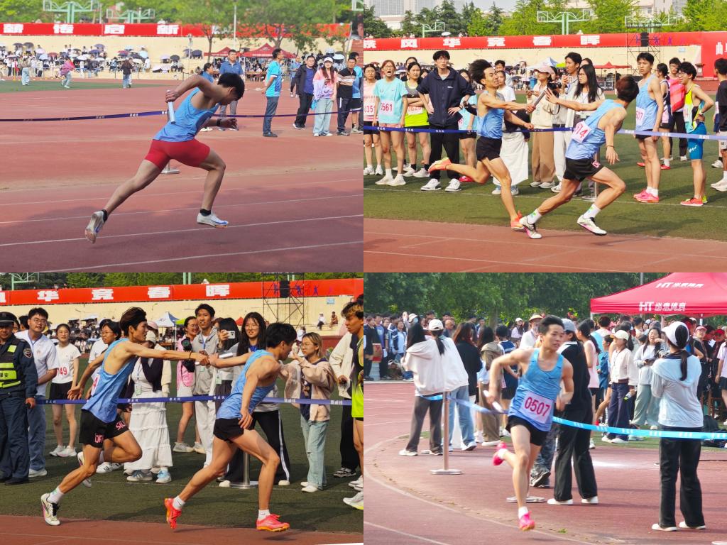 初夏艳阳,曲园盛景。5月16日,我校运动会田径赛男子4×400米决赛在西操田径场激烈展开。