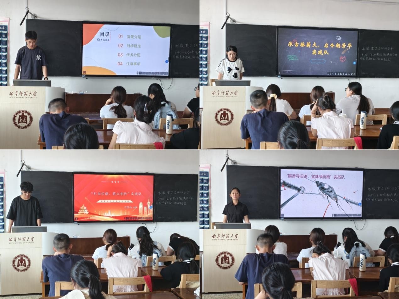 启航会上,各实践队代表依次登台,从实践的核心环节、创新模式以及预期成果三个方面介绍了实践的开展流程,分享自己的实践特色和实践方法。