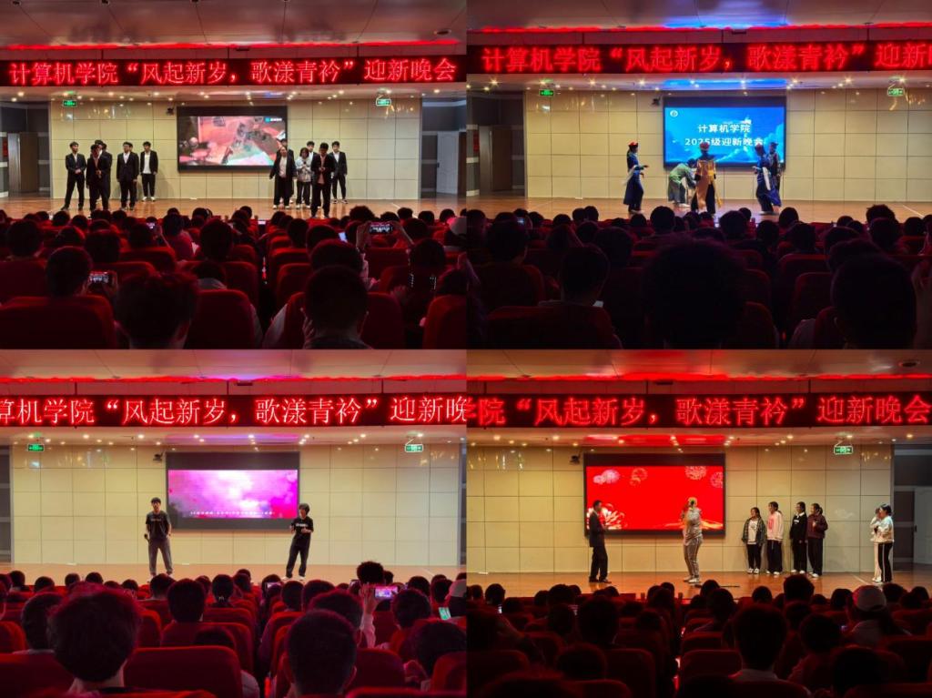 在图书馆报告厅隆重举行“风起新岁,歌漾青衿”迎新晚会。系主任马春梅、朱荣,本科生辅导员孙泽玮莅临现场,与2025级全体新生齐聚一堂,共同观看了本场晚会。