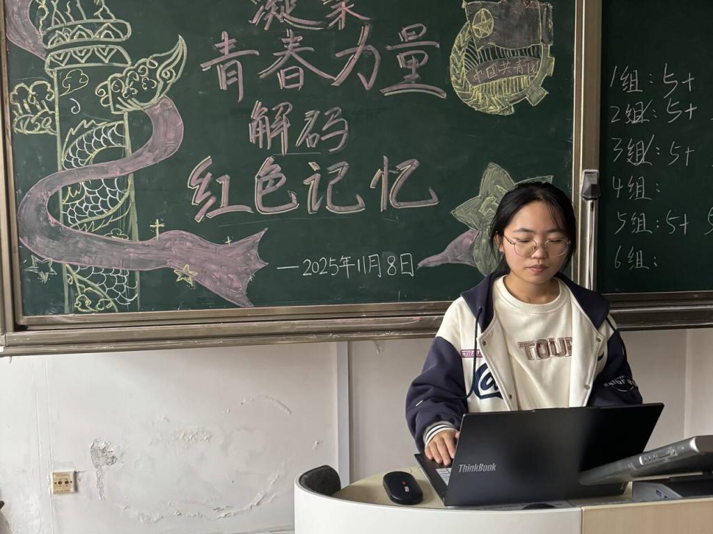 活动伊始,2024 级计科二班团支书褚益彤简明扼要地介绍了本次团课的核心主旨,详细介绍了活动流程安排,正式拉开团课序幕。在“战地推演”环节,现场通过还原抗日战争时期的经典历史场景、暗藏关键线索,穿插趣味历史问答互动,让团员们在沉浸式追溯历史的过程中,深刻体悟革命先辈的崇高精神,进一步筑牢爱国情怀。