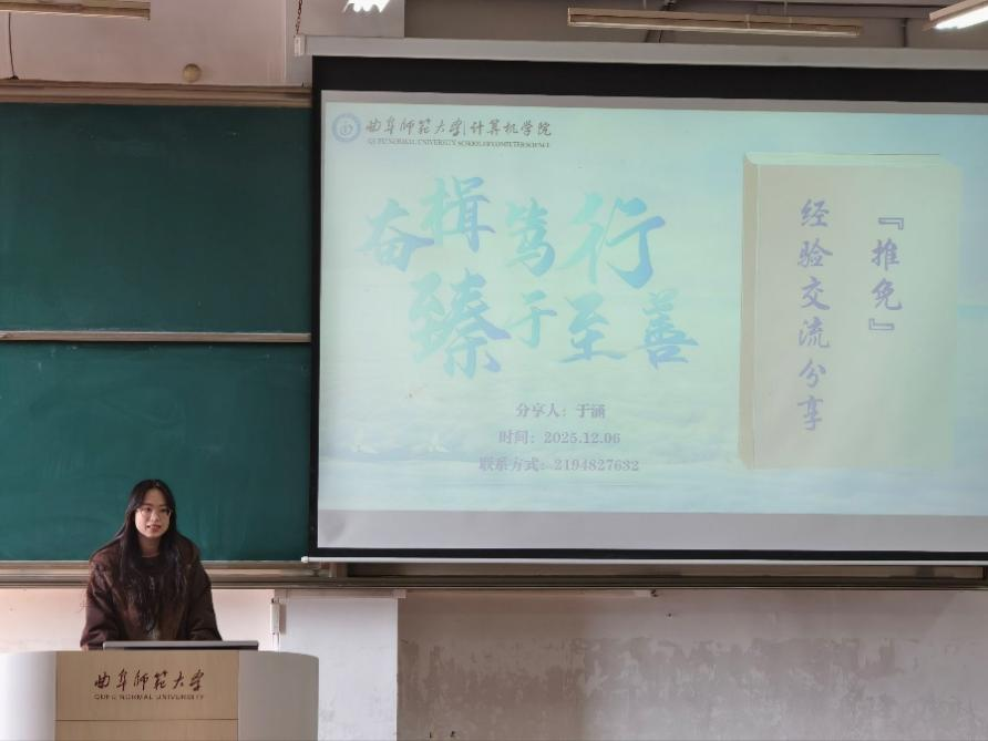 最后,游雨晴结合自己的学习经历,介绍了保研的心路历程,在心态方面激励同学们要有把不敢想之事变成现实的勇气,向着目标不断努力。