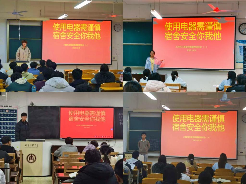 此次班会不仅让学生系统掌握了宿舍用电的“红线”与“规范”,更将“安全自律”的意识融入日常行为认知,既填补了学生对“低功率电器误用风险”的认知空白,也为学生安心学习生活筑牢了安全屏障。