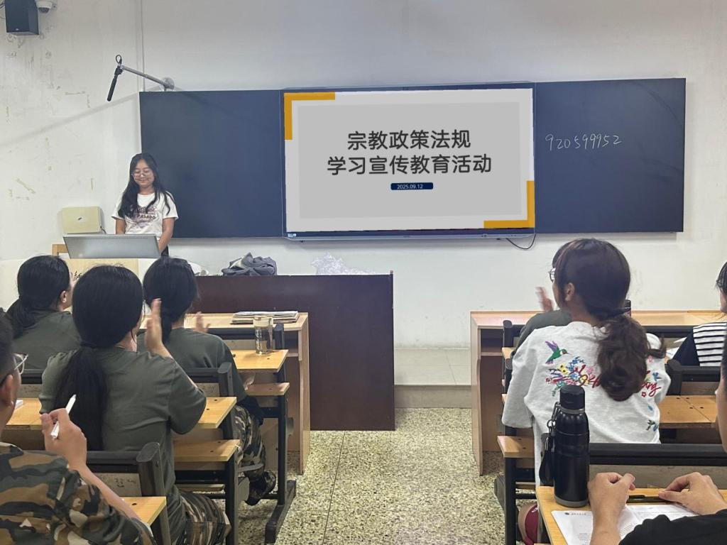 组织开展新生宗教政策法规学习和宣传教育活动,全体25级新生参加。