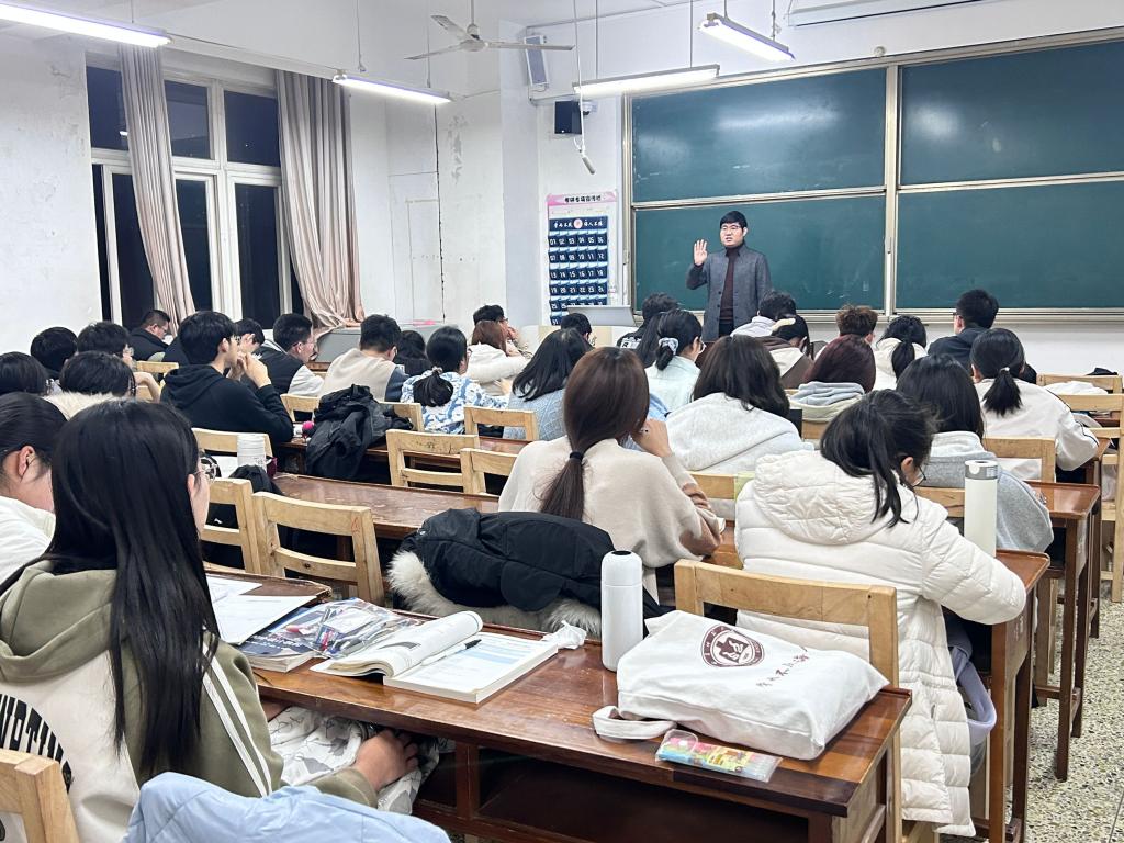 2023级师范生班级辅导员孙泽玮为23级全体师范生精心组织了一场以“深学笃行习近平文化思想,争做信息时代‘大先生’”为主题的专题学习班会。