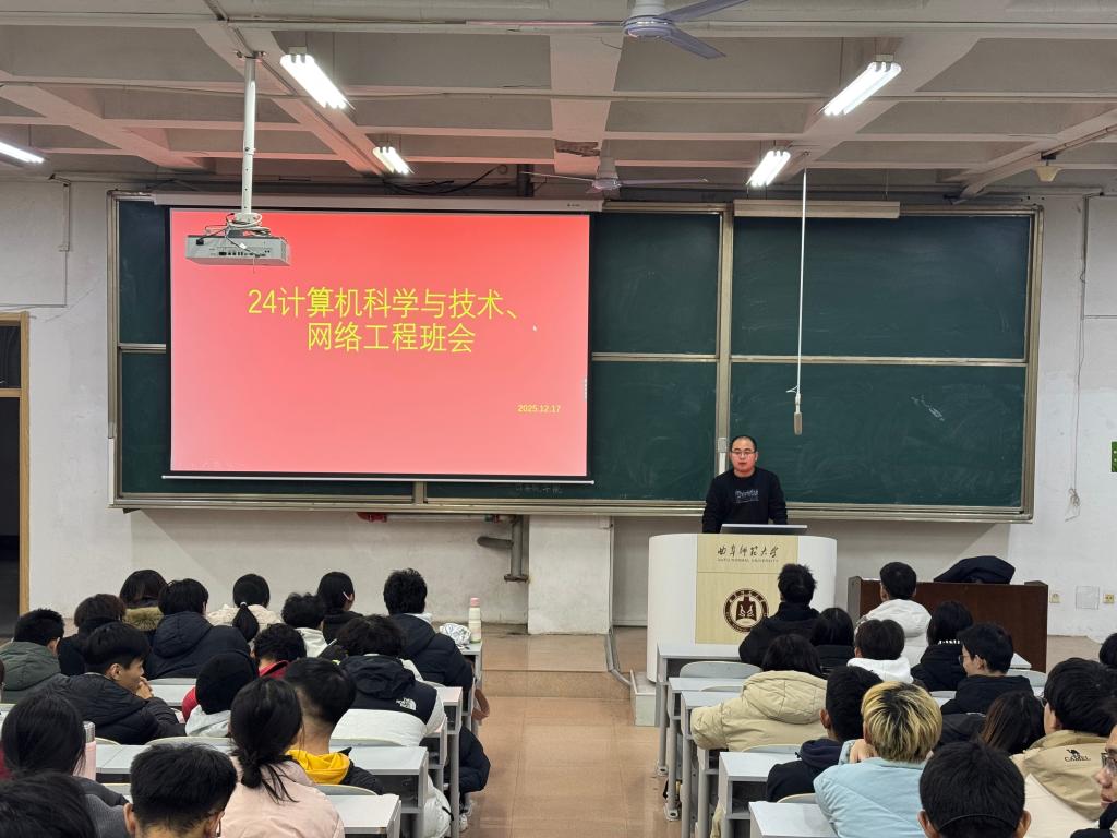 班会聚焦大二学生普遍关心的专业价值与社会应用问题,刘兆宇引导学生探讨“在人工智能迅猛发展的今天,计算机人才的核心竞争力何在?”“如何防止技术应用加剧数字鸿沟或伦理失范?”等现实议题。通过分析正面典型案例与潜在风险,他启发学生认识到,坚实的技术能力必须与正确的价值导向、深厚的家国情怀相结合,方能行稳致远。他鼓励学生将个人发展置于国家网信事业发展和科技自立自强的宏阔背景下考量,思考如何用自己的专业知识服务社会、贡献国家。