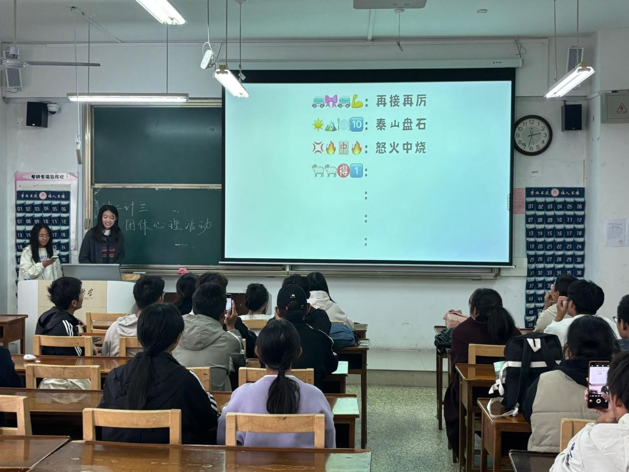 活动在一片轻松愉快的氛围中拉开帷幕。首先进行的是“乐心畅怀‘猜一猜’”环节,同学们通过有趣的猜谜游戏迅速熟络起来。这一环节不仅营造了良好的活动氛围,更在无形中促进了同学们之间的相互了解,有助于同学们形成深厚的友谊。