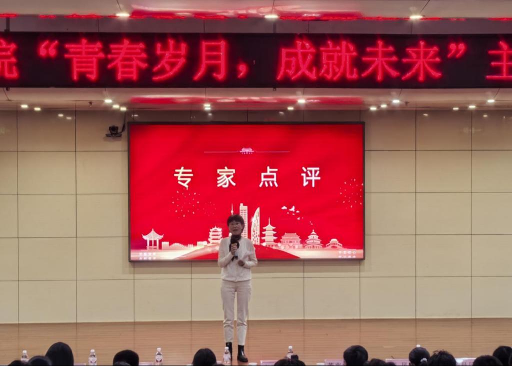 新闻传播系副主任卢长春对本次演讲比赛进行总结点评。她首先对参赛选手们的出色表现给予了高度赞扬,认为每位选手都充分展现了青春的风采与智慧的光芒,接着特别强调了演讲中思想的深度与广度,以及语言表达的艺术性。最后,卢老师对选手提出了宝贵建议与更高要求,并鼓励所有参赛者将这份热情与执着带入未来的学习与生活中。