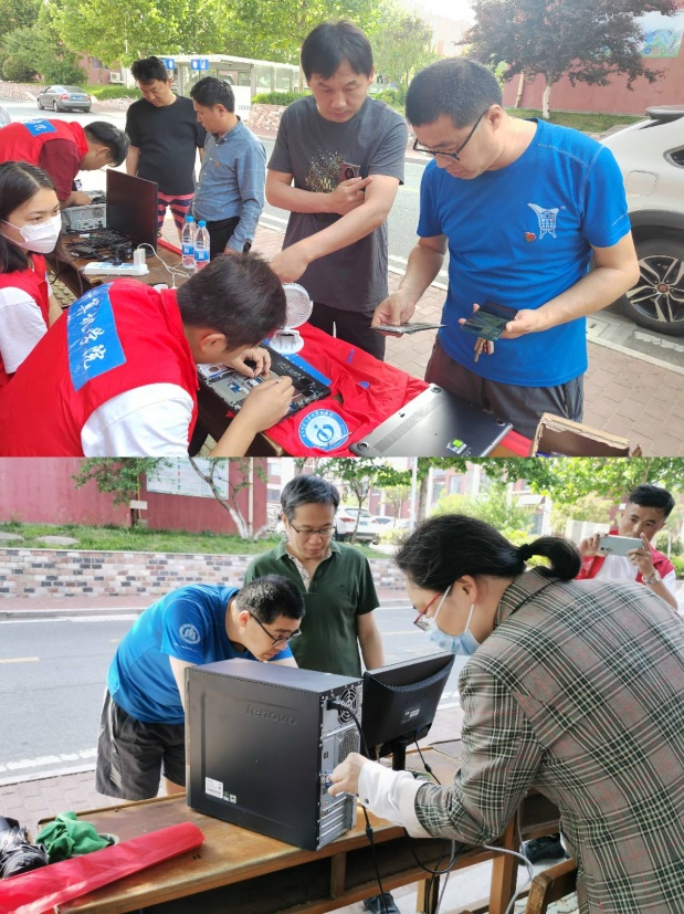 下午两点半,志愿者们在教授花园集合并进行准备,在老师们的指导和帮助下,志愿服务顺利开展。本次服务内容主要为:拆机清灰、整机清洁、系统重装、软件安装、系统整理以及在可操作的范围内解决电脑无法开机等问题。在义诊过程中,志愿者们对电脑出现的问题进行一一解决并且耐心细致地讲解了处理电脑故障的方法,并科普了一些电脑日常维护的小知识。老师和同学们对电脑进行拆分,与同学们一起动手,韩军峰老师还为同学们传授了一些维护电脑的技巧和方法,帮助志愿者进行电脑维修,让志愿者受益匪浅。老师亲力亲为的身影彰显了党员的责任担当,践行了共产党员的责任与使命。此次义诊活动让志愿者做到了在实践中学习,在实践中感悟。开展的是师生服务,推进的是师生情谊。