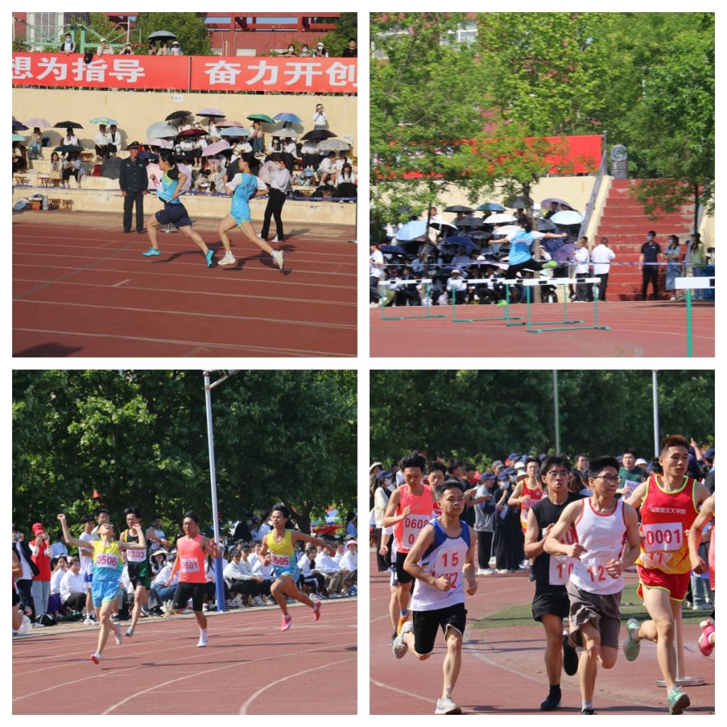 王建帮、郭宗齐用平时的汗水积累和赛场上灵活的运动技巧勇夺第三名和第四名的好成绩;男子400米栏预赛中,李玉路,张志豪,孔舒旋展现出惊人的爆发力和灵活的跨栏技巧,分别以第五,第六,第八的成绩进入决赛;男子三级跳远比赛中,张业昕、郭宗齐身似长鹰,用每一步腾跃证明了自己,分别获得第三名和第四名的光辉荣誉;男子1500米决赛中,我院运动员敢于挑战体力与耐力的双重极限,拼搏进取,一马当先。韩志坤一举夺魁,刘立友取得第三名的好成绩。