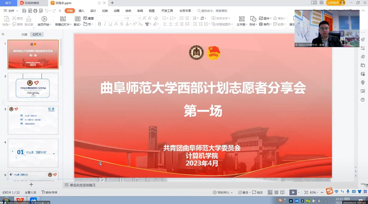 承办的曲阜师范大学第一场“西部计划”志愿者分享会顺利召开。本次会议由篮球现场直播