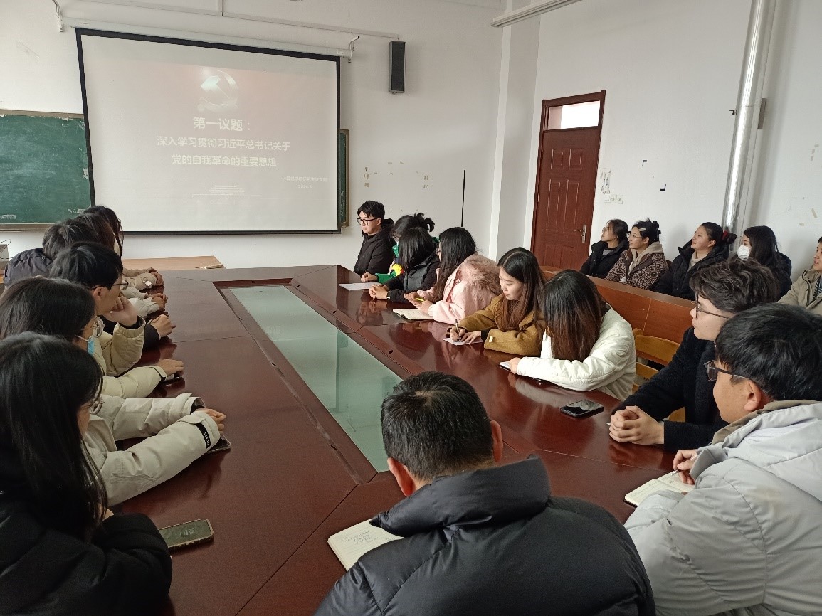 本次会议第一议题是“深入学习贯彻习近平总书记关于党的自我革命的重要思想”。会议伊始,全体党员认真学习了第一议题。习近平总书记在二十届中央纪委三次全会上强调,要加强纪检监察干部队伍建设,常态化清除害群之马,坚决防治“灯下黑”,努力做自我革命的表率、遵规守纪的标杆。中央纪委三次全会工作报告强调“突出发扬彻底自我革命精神深化纪检监察机关自身建设”,要求在思想上勇于自我革命、在作风上勇于自我革命、在廉洁上勇于自我革命、在严管上勇于自我革命。习近平总书记系统性、原创性地阐述了党的自我革命的重要思想,为破解大党独有难题、深入推进党的自我革命提供了根本遵循、行动指南。