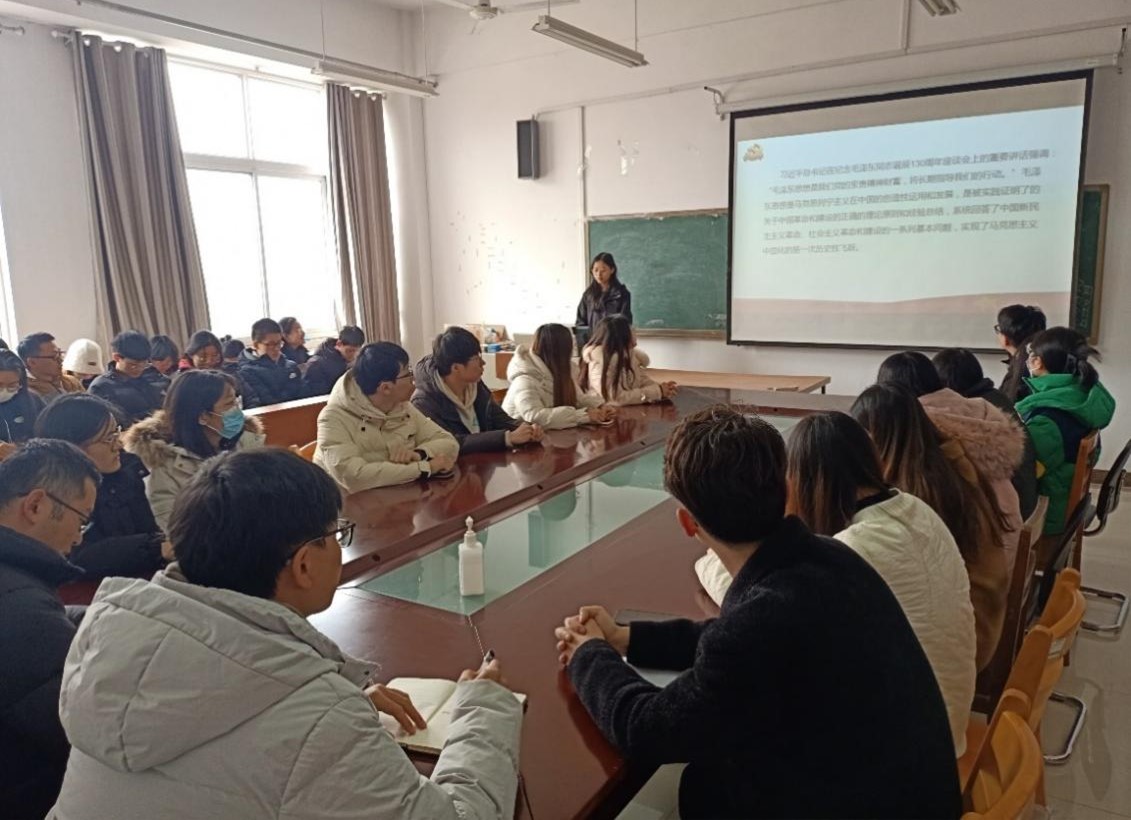 研究生党支部、研究生第二党支部于JS410会议室开展以《马克思主义中国化时代化新的飞跃》为题的主题教育专题党课。本次党课由党支部书记袁玉卓老师主持,研究生党支部、研究生第二党支部党员参加本次活动。