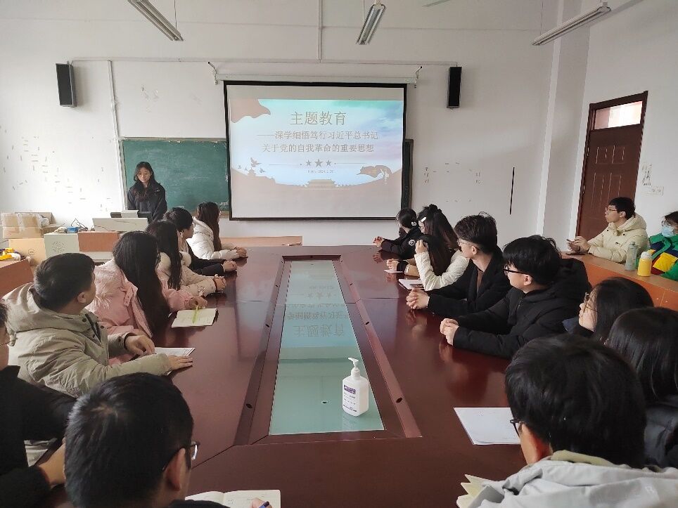 研究生党支部于JS410会议室召开以《深学细悟笃行习近平总书记关于党的自我革命的重要思想》为题的主题教育专题党课。本次党课由党支部书记袁玉卓老师主持,研究生党支部、研究生第二党支部党员参加本次活动。