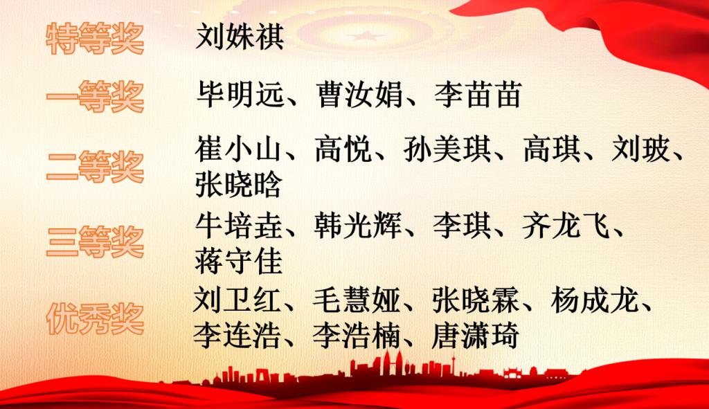 11月27日,支部召开支委会会议对参赛作品进行了评选。会议开始,首先确定了由支委会委员和教师党员组成的评委名单,评委们根据评选流程和评分标准对每一组参赛作品进行打分,按照得分高低顺序评选出本次大赛特等奖1名,一等奖1名,二等奖2名,三等奖2名,优秀奖若干名。具体获奖名单如下: