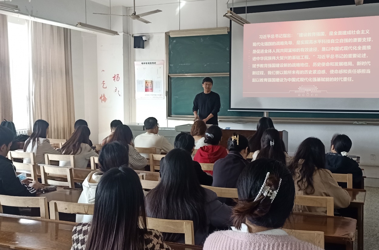 最后,党支部书记葛道辉老师对此次主题党日进行总结并强调,党员同志们要通过此次学习充分了解建设教育强国的重要性。深刻认识习近平总书记系列论述蕴含的重大原理、丰富内涵,深刻把握教育强国建设的战略定位、核心要义和实践要求。坚持不懈用习近平新时代中国特色社会主义思想强基铸魂,用中华民族伟大复兴中国梦凝聚共识,毫不动摇固守中国共产党领导这个圆心,坚持不懈扩大同心圆半径,坚定拥护“两个确立”、坚决做到“两个维护”,不断增强建设教育强国的政治自觉、思想自觉和行动自觉。