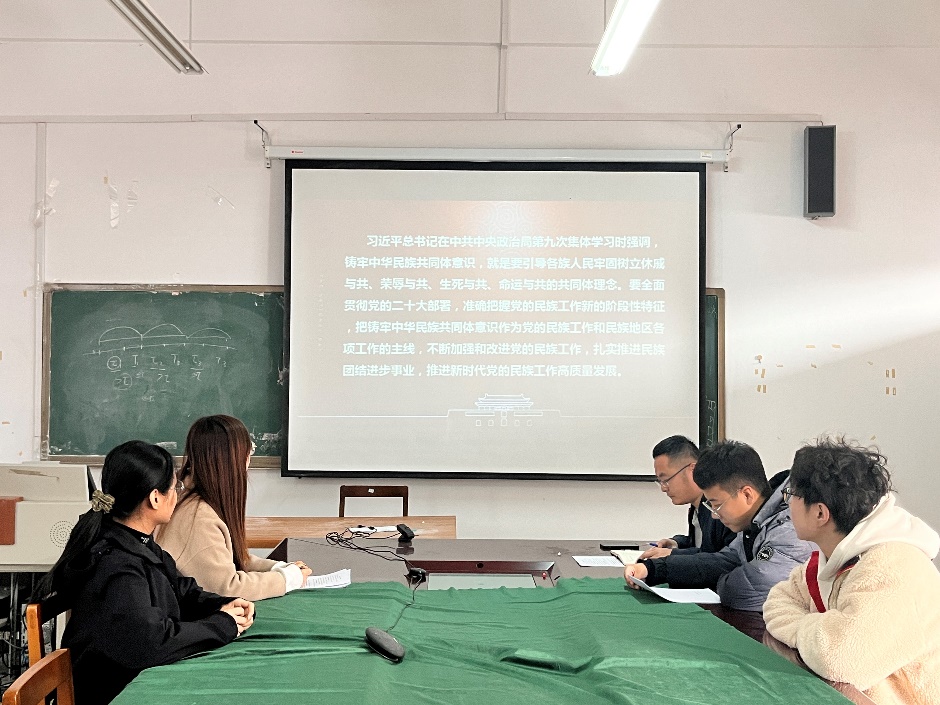 本次会议的第一议题是“习近平在中共中央政治局第九次集体学习时强调 铸牢中华民族共同体意识 推进新时代党的民族工作高质量发展”。会议伊始,参会党员共同学习了第一议题。习近平总书记指出,铸牢中华民族共同体意识,需要构建科学完备的中华民族共同体理论体系。要立足中华民族悠久历史,把马克思主义民族理论同中国具体实际相结合、同中华优秀传统文化相结合,遵循中华民族发展的历史逻辑、理论逻辑,科学揭示中华民族形成和发展的道理、学理、哲理。要优化学科设置,加强学科建设,把准研究方向,深化中华民族共同体重大基础性问题研究,加快形成中国自主的中华民族共同体史料体系、话语体系、理论体系。注重激发广大专家学者的积极性主动性创造性,加强青年专家学者的培养,为他们把好方向、搭建平台、创造机会,鼓励他们潜心钻研、厚积薄发,推出立足中国历史、解读中国实践、回答中国问题的原创性理论成果。