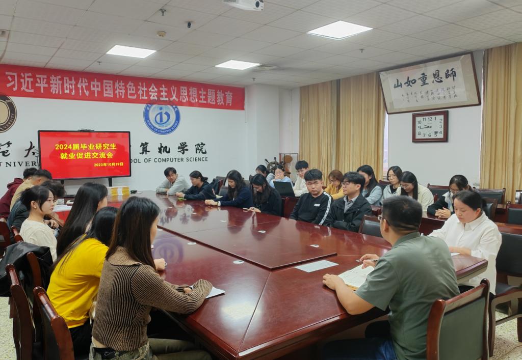 于10月19日下午16:00在JC1011会议室召开2024届毕业研究生就业促进交流会,会议现场同时开通了腾讯会议,方便在外学习的毕业生参与交流。本次会议由研究生辅导员程荣花老师主持,副院长尚军亮老师及2024届毕业研究生参加。