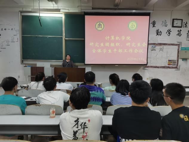 于6月8日晚在JE103教室召开第十六届团委研究生团组织、研究生会全体学生干部工作会议。会议由研究生辅导员程荣花老师主持,篮球现场直播