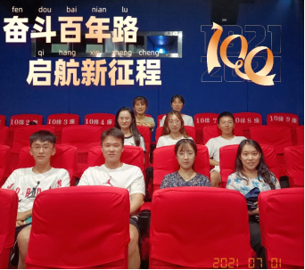 为庆祝中国共产党的100岁诞辰,2021年7月1日中午12点半,篮球现场直播 研究生党支部组织党员在电影院观看红色电影《1921》,一起见证中华民族改命换运的时刻。