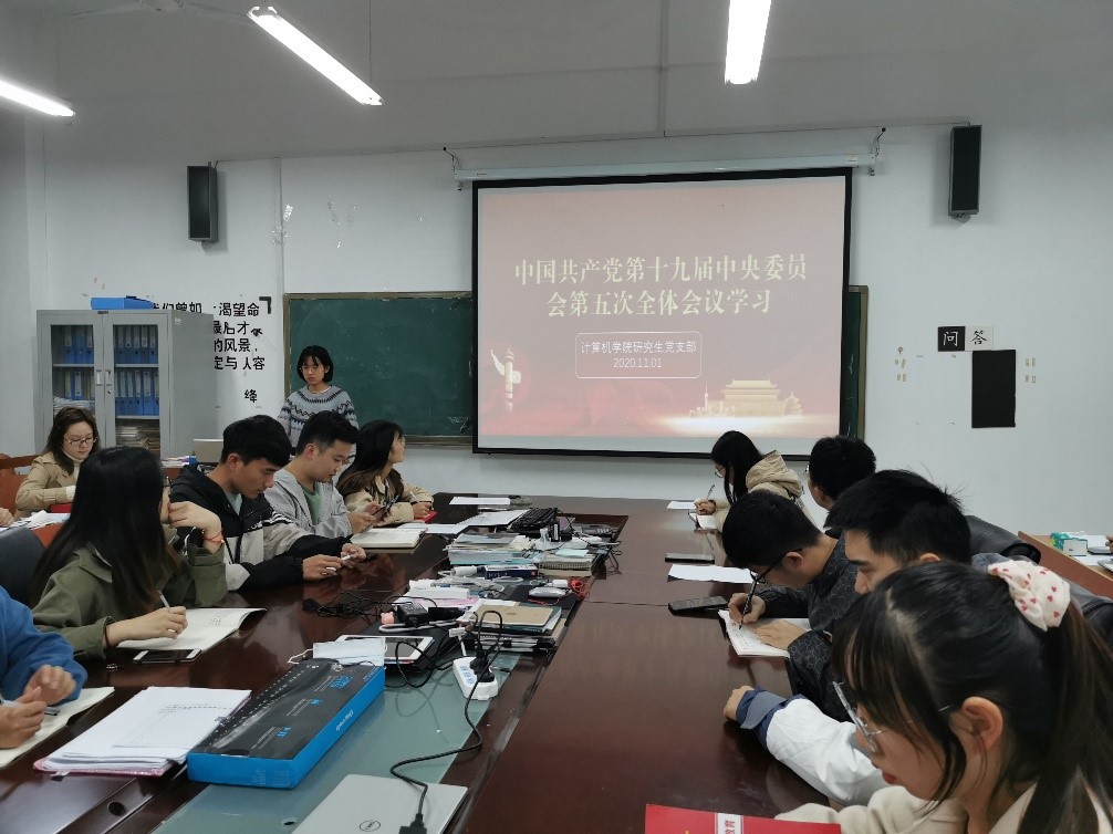 研究生党支开展“中国共产党第十九届中央委员会第五次全体会议公报” 主题党日。支部书记尚军亮老师以及研究生党员参加本次活动。活动由学习委员吴胜琪主持。