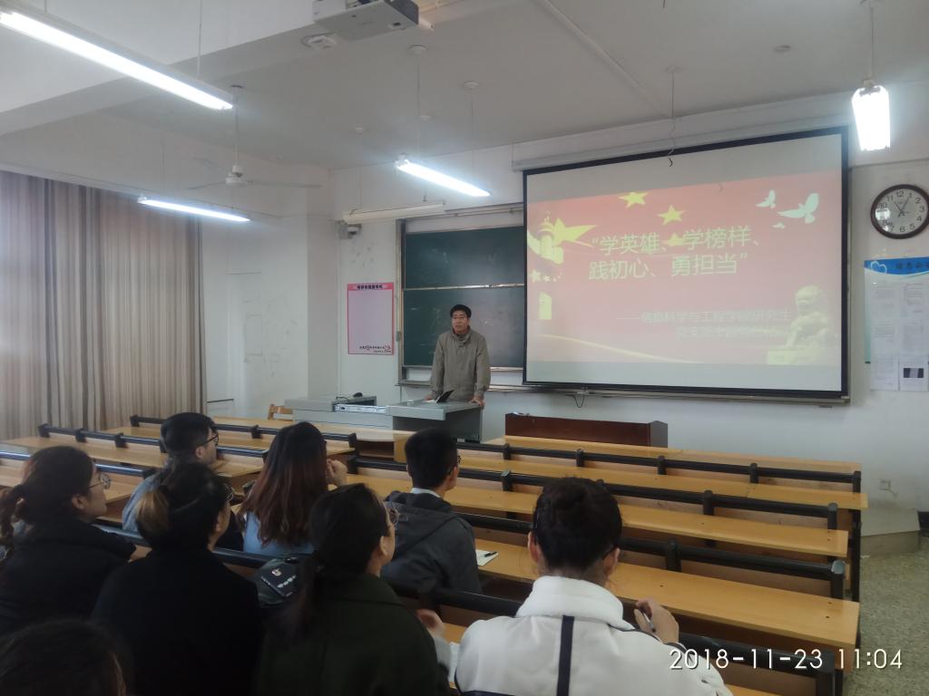 为认真学习习近平总书记重要指示精神和先进典型英雄事迹,2018年11月23日上午,信息科学与工程篮球直播吧