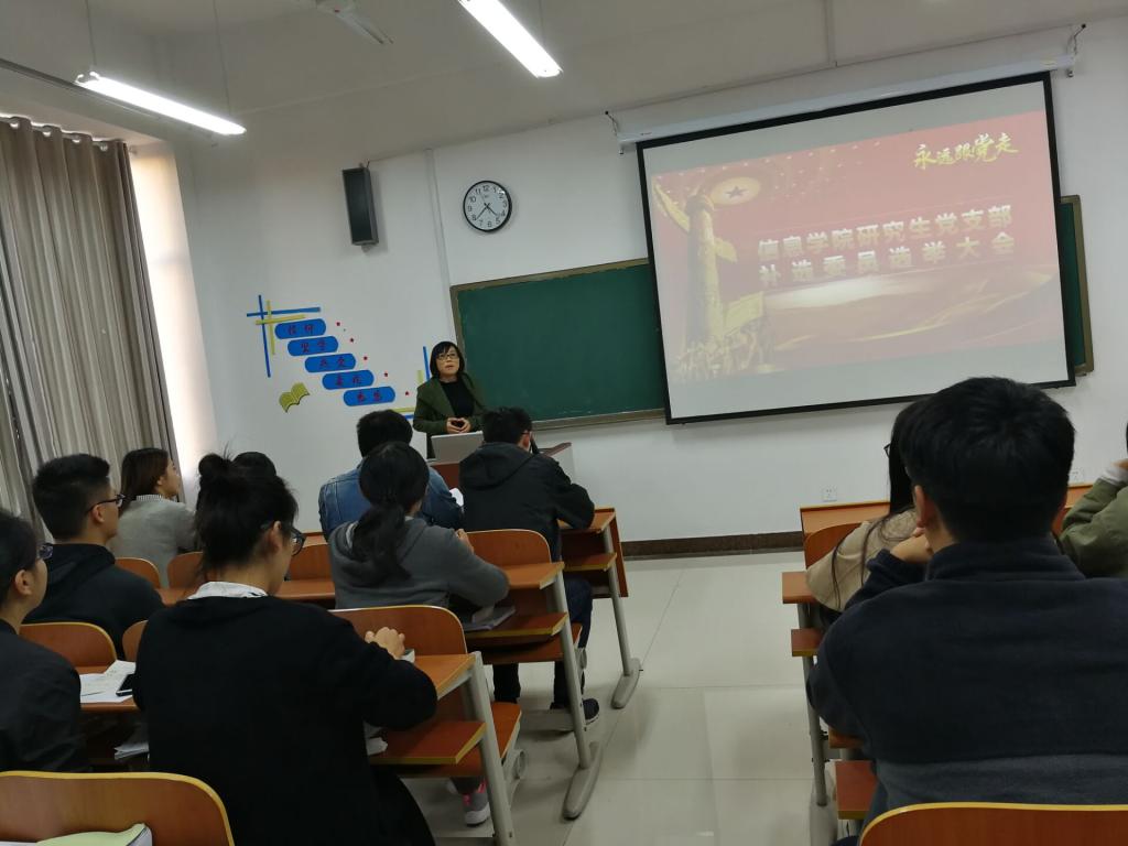 研究生党支部举行了党员大会,选举补选委员。参加会议的有党支部书记夏小娜老师和各位研究生党员,会议由副书记孙坤同志主持。