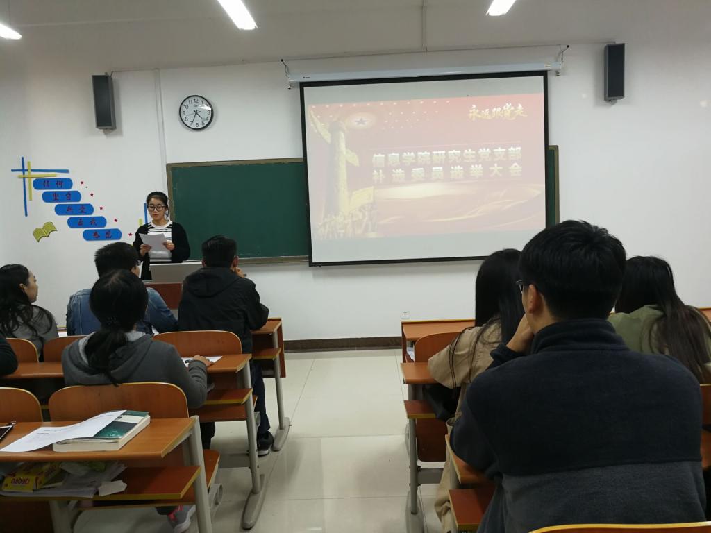 大会在全体党员同志严肃的态度、积极地配合中顺利举行,成功选举了研究生党支部的补选委员。
