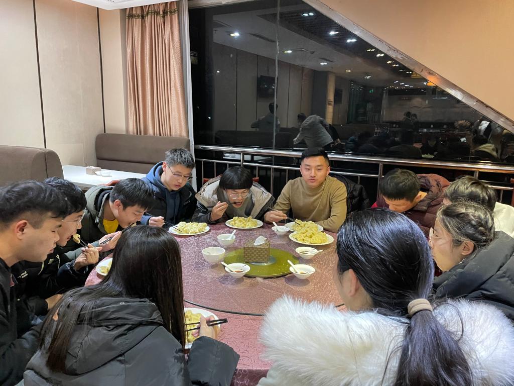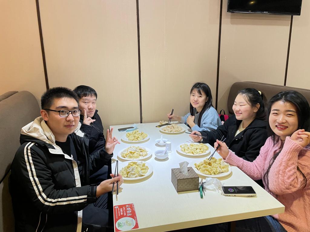 老师和同学们一同吃水饺并亲切交谈,希望同学们讲团结,相互帮,共进步,努力营造一个安全、健康、舒适的学习和生活环境。同学们纷纷表示今后更要以积极的态度、抖擞的精神认真学习。随后,老师向同学们讲述了冬至的文化背景,氛围和谐融洽,师生在欢快的氛围中感受中国传统习俗,感受集体生活的幸福与美好。