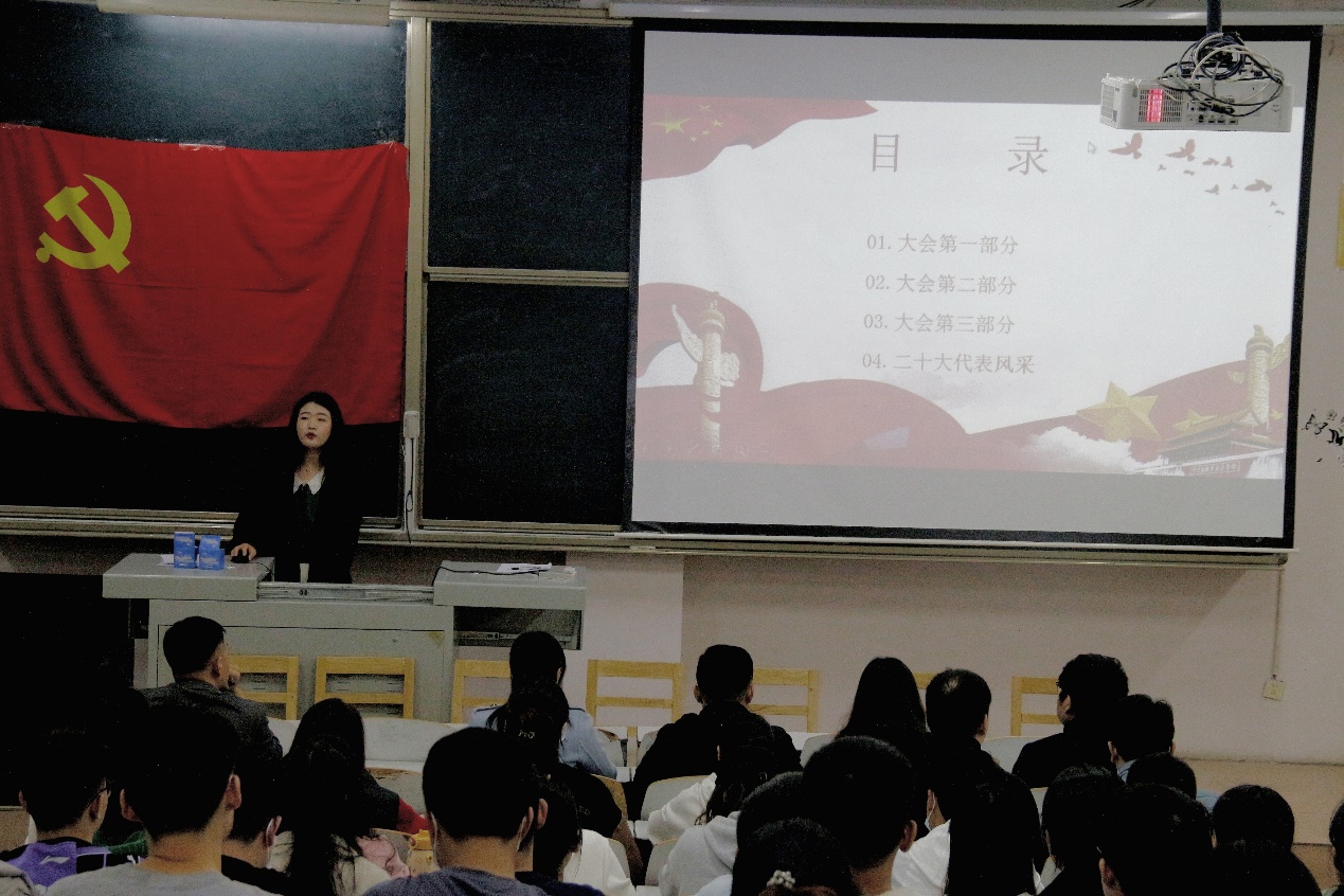 本科生党支部组织全体党员开展党的二十大精神宣讲专题党课学习,会议由本科生党支部书记孙宇主持。