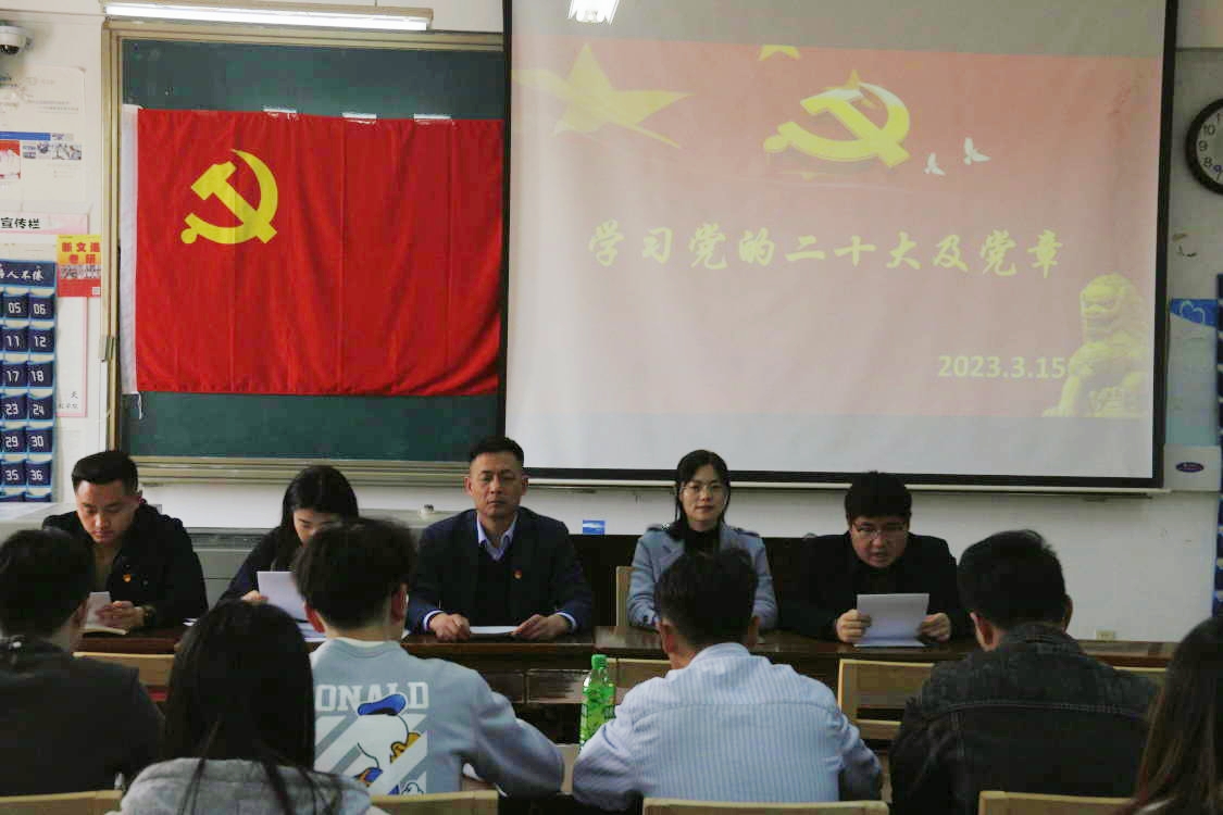 会上,学习委员孙泽玮带领全体党员学习党的二十大会议报告内容及二十大报告中的精神内核。孙泽玮以上率下讲党课,示范带头作宣讲,引导党员自觉把思想和行动统一到党的二十大精神上来,把学习成果转化为推进学校事业高质量发展的实际行动。他表示,希望各位党员坚定不移跟党走,深入研读报告原文,做到学深悟透,并通过学习,不断提高政治站位与党性修养,充分发挥党员的先锋模范作用。