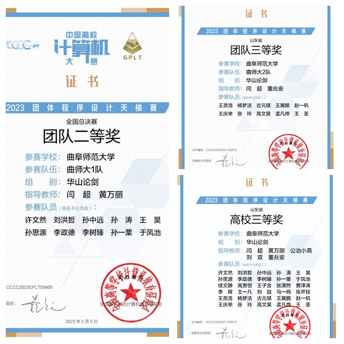 近日,第八届“中国高校计算机大赛—团队程序设计天梯赛”全国总决赛已落下帷幕。本次比赛篮球现场直播 共派出两只队伍,经过三小时的激烈角逐,共斩获全国总决赛团队二等奖一项,山东省团队三等奖一项。