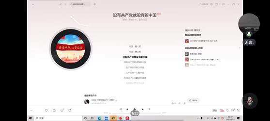 比赛开始后,各位学生党员在认真聆听过几首红歌片段后,逐渐进入状态。无论是经典的《红旗飘飘》、《东方红》还是凝结革命先烈血泪的《南泥湾》、《没有共产党就没有新中国》等歌曲,都被学生党员精准地猜中了,展现了大家风华正茂的青年党员风采。一首首红歌不仅记录了共产党的光荣历史,也记录了一个时代党员的精神风貌与忠实信仰。最后,在所有学生党员的共同努力下,比赛以线上齐唱《我与我的祖国》的形式圆满地落下了帷幕。