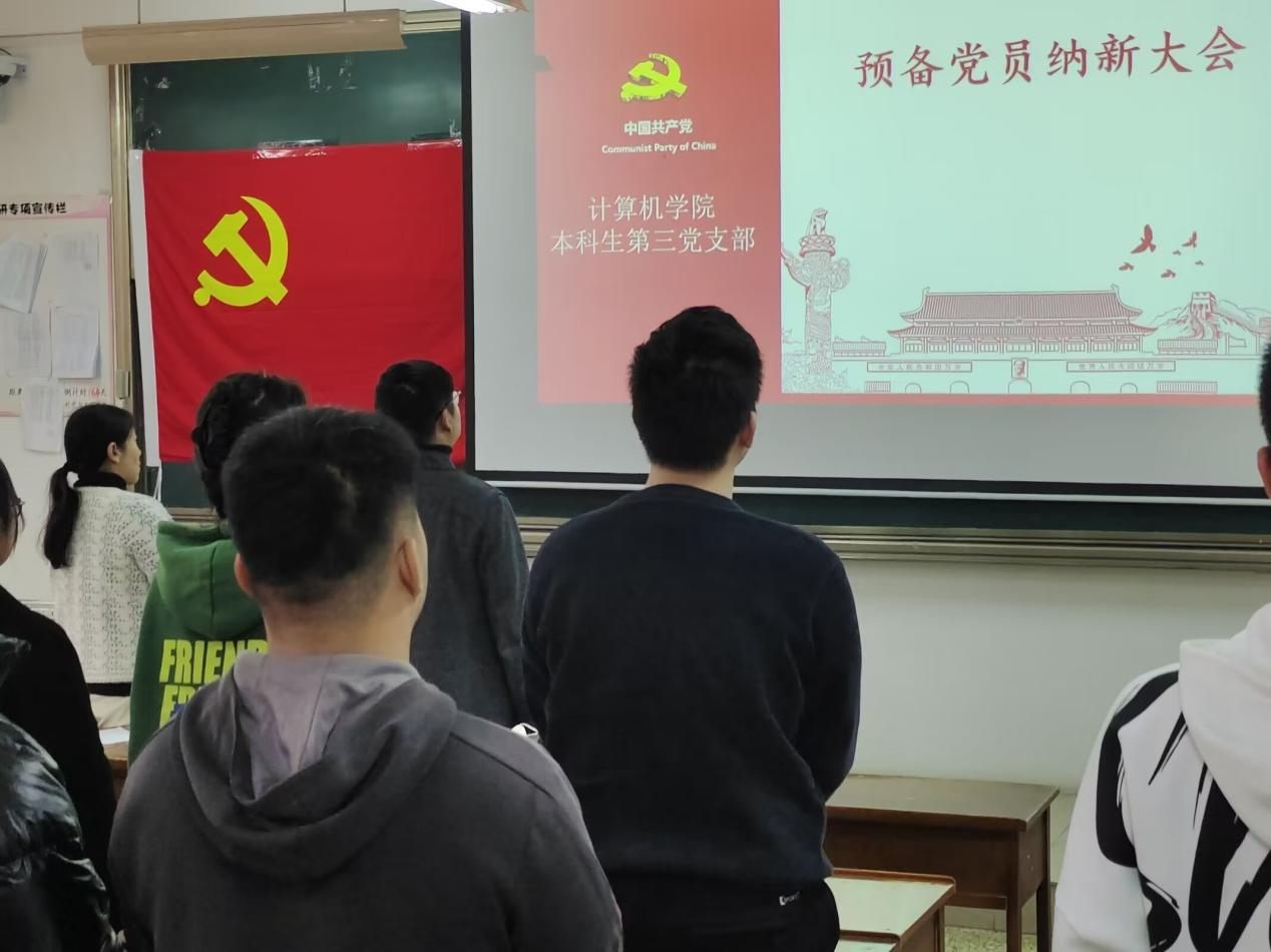 本科生党支部于2023年11月20日下午3点在JC412召开预备第三支部党员纳新大会。本次会议由第三党支部书记杨丹丹主持开展,第三党支部党员共同参加。