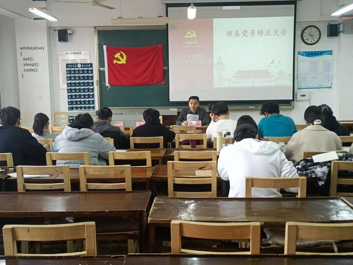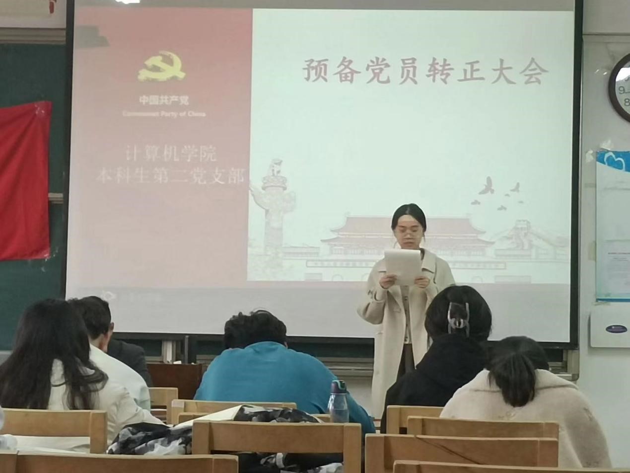 2023年11月27日下午,篮球现场直播 本科生第二党支部于JC407召开预备党员转正大会。本科生第二党支部全体党员参加此次会议。会议由本科生第二党支部书记孙宇主持。