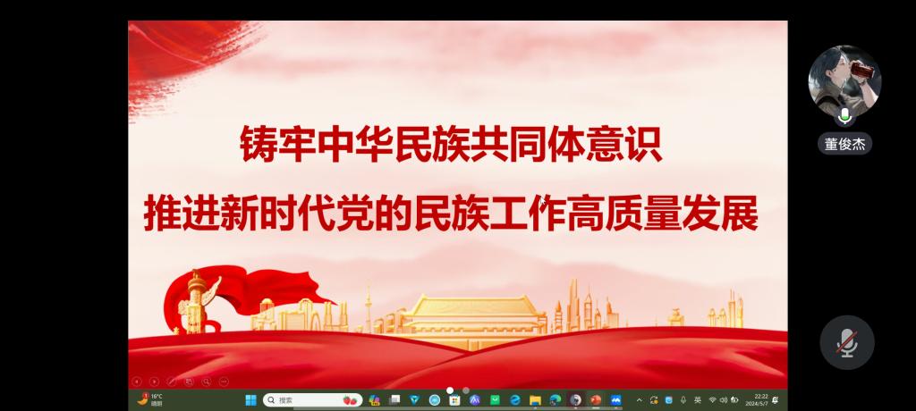 为铸牢中华民族共同体意识,推进民族团结进步事业,2024年2月20日,篮球现场直播 本科生党支部召开主题为《铸牢中华民族共同体意识,推进新时代党的民族工作高质量发展》的线上学习党日活动,会议由分党校秘书长董俊杰主持,全体党员参加。