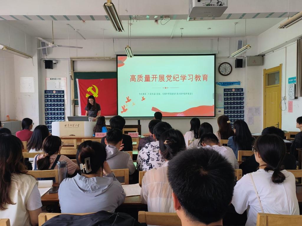 杨丹丹老师强调,党员同志们不仅要深刻认识开展党纪学习教育的重大意义,并且要提高政治站位、深化思想认识、强化责任担当,以严明的纪律确保在日常生活中坚定拥护“两个确立”、坚决做到“两个维护”,知行知止、令行禁止,形成推进中国式现代化的强大动力和合力。