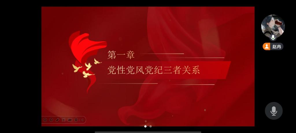本科生党支部召开主题为《坚持党性党风党纪一起抓》的线上学习党日活动,会议由分党校秘书长赵冉主持,全体党员参加。