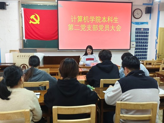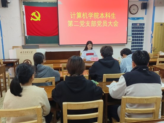 本科生第二党支部于JC406召开党员大会,全体党员参与。