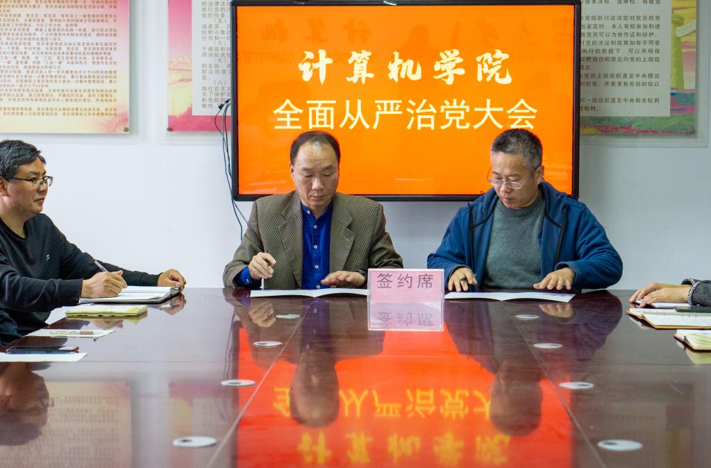 2020年度全面从严治党工作取得的成绩、现阶段存在的问题及应对措施进行了详细汇报;第二项由各党支部书记向党委签订了《全面从严治党、党风廉政建设责任书》;第三项党委班子成员领取《曲阜师范大学二级党委班子成员落实全面从严治党、党风廉政建设“一岗双责”责任清单》;第四项由篮球直播吧