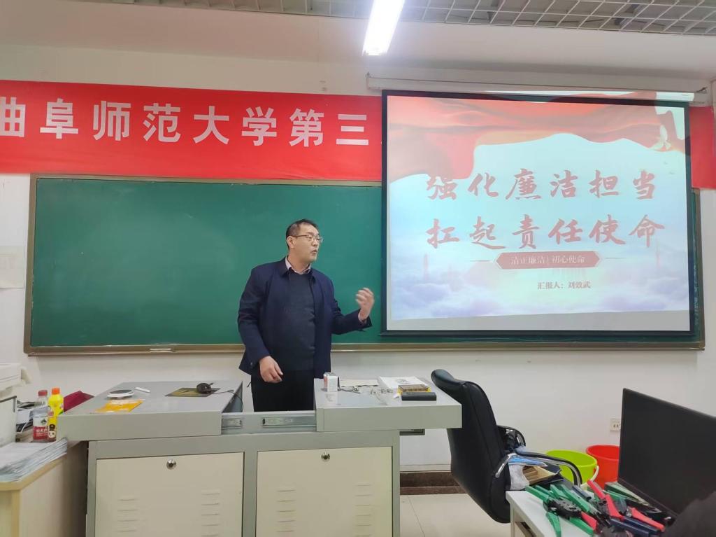 副院长刘效武在JS105组织开展了以“强化廉洁担当,扛起责任使命”为主题的党纪学习专题党课。