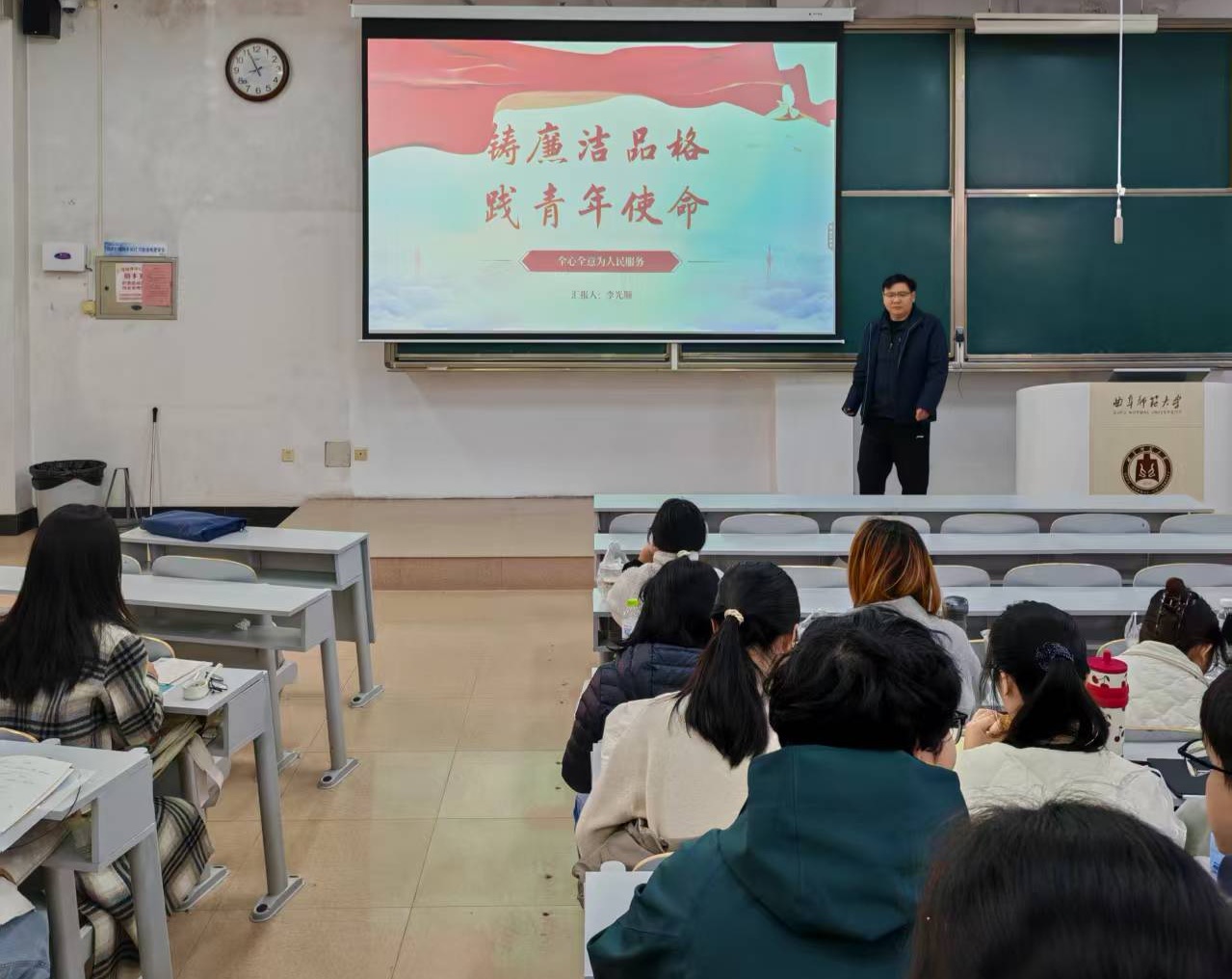 学生党员、入党积极分子及部分学生骨干讲授了一堂题为“筑廉洁品格 践青年使命”的专题廉政党课。
