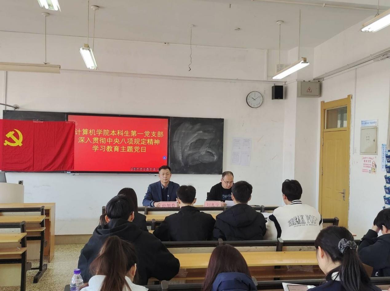 本科生第二党支部在JC401开展深入贯彻中央八项规定精神学习教育启动部署会。